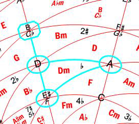 Figure 17. Graphic representation of C+ and Am chords on the Harmonic Wheel.