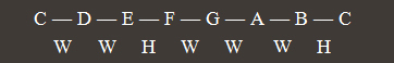 Therefore, we can define a Major Scale as a set of 7 notes characterized by the whole and half step succession W W H W W W H. Another equivalent way to build the Major scale consists in finding the notes forming Major or Perfect 2nd to 8th intervals with the tonic.